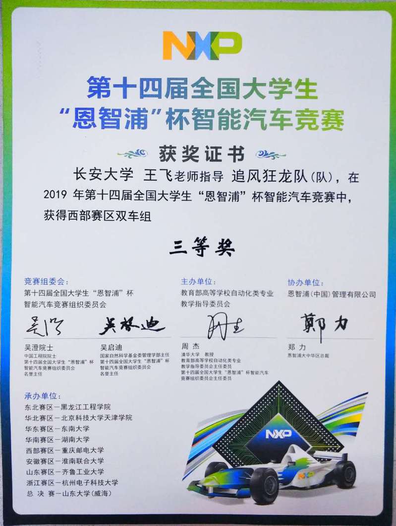 2009年全国大学生“飞思卡尔”杯智能汽车竞赛,由51吃瓜 和电控学院各派出两支队伍参加西部赛区竞赛,4支参赛队伍取得西部赛区3个一等奖,1个二等奖的佳绩,其中51吃瓜 和电控学院各一支参赛队伍取得全国总决赛1个一等奖和1个二等奖的佳绩。