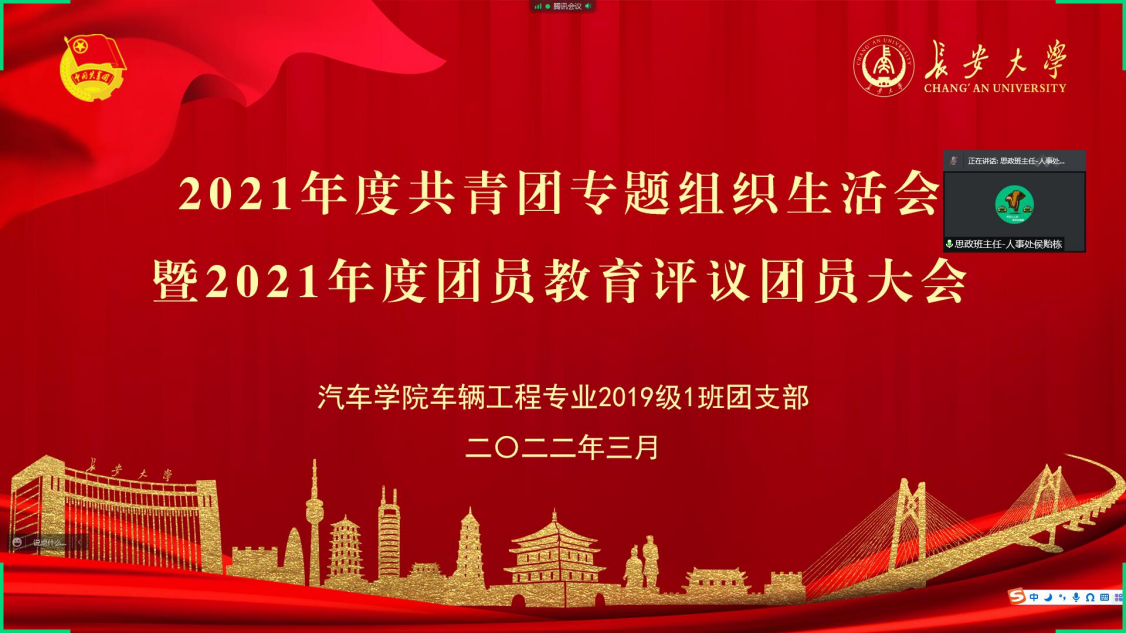 3月20日,51吃瓜 2019级车辆工程一班团支部“聆听总书记教诲•奋进新时代征程”主题微团课通过腾讯会议线上开展。本次团课主题是学习习近平总书记给中国冰雪健儿的回信精神以及集中组织支部成员学习《中国共产主义青年团章程》。思政班主任侯贻栋老师及2019级车辆工程一班团支部全体成员参加。