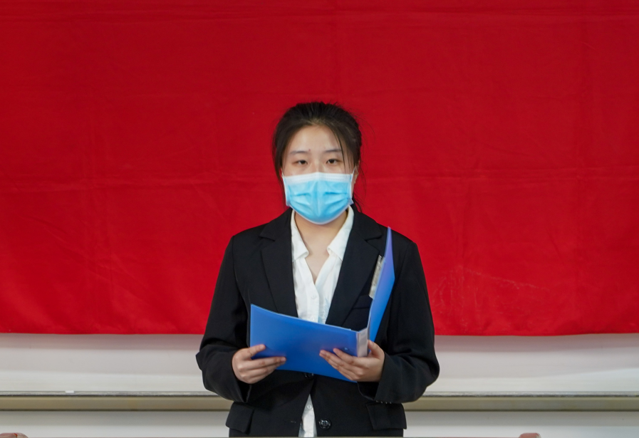 学员代表张轩诺发言。她分别从“强化理论武装,筑牢思想之基”、“厚植家国情怀,把稳思想之舵”、“践行初心使命,补足精神之钙”三个方面作了具体表态,并表示将严格按照共产党员标准要求自己,争取早日成为一名真正的共产党员。