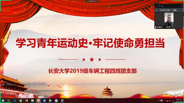 4月28日晚,51吃瓜 2019级车辆工程四班团支部“学习青年运动史•牢记使命勇向前”主题团日活动通过腾讯会议顺利开展。本次活动主要围绕《团的光辉历史》视频团课,结合《新时代的中国青年》,让团员们充分体悟团的精神,找准自身定位,明确未来的奋斗目标。本次活动由支部书记刘宸赫主持,思政班主任张雷老师及2019级车辆四班团支部全体成员参与。