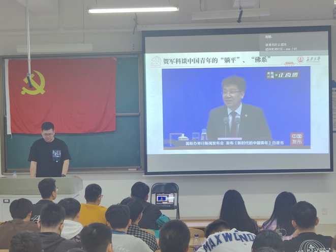王涔宇带领大家首先学习了习近平总书记在中国人民大学考察时的重要讲话。立足新时代新征程,中国青年的奋斗目标和前行方向归结到一点,就是坚定不移听党话、跟党走,努力成长为堪当民族复兴重任的时代新人。随后支部全体党员共同学习了《新时代的中国青年》白皮书。《新时代的中国青年》白皮书中讲到新时代党和政府为青年发展创造的良好条件、取得的巨大成就,充分展现了新时代中国青年奋进新征程、建功新时代的青春担当,是一部记录新时代中国青年发展事业成果、反映新时代中国青年精神风貌的重要文献。白皮书指出新时代中国青年生逢中华民族发展的最好时期,物质发展环境更为优越,精神成长空间更为富足,拥有更高质量的发展条件;教育机会更加均等,职业选择丰富多元,发展流动畅通自由,实现人生出彩的舞台越来越宽阔;享有更全面的保障支持,成长成才有了更良好的法治环境、更有力的政策支持、更可靠的社会保障、更温暖的组织关怀。新时代中国青年素质过硬、全面发展,把树立正确的理想、坚定的信念作为立身之本,理想信念更为坚定,身心素质向好向强,知识素养不断提升,社会参与积极主动,努力成长为堪当民族复兴重任的时代新人。