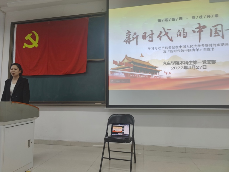 本科生第一党支部于4月27日晚在宏远1205教室开展主题学习,会议由支部书记杨倩主持,王涔宇同志领学。