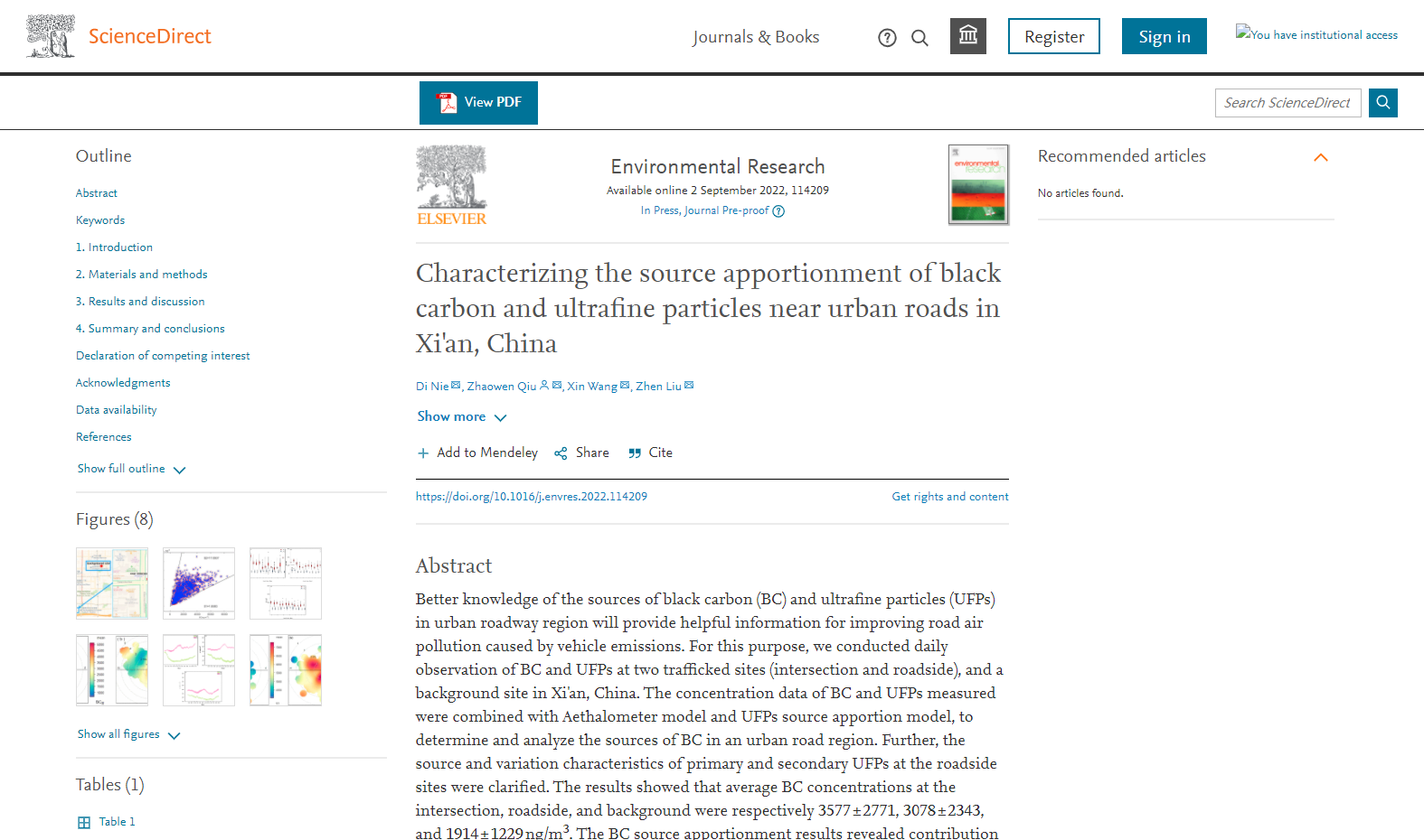 2022年9月2日,国际重要期刊《Environmental Research》(IF=8.431,top Journal)在线发表了51吃瓜 邱兆文教授团队的研究成果“Characterizing the source apportionment of black carbon and ultrafine particles near urban roads in Xi'an, China”。该论文第一作者为51吃瓜 硕士研究生聂迪,邱兆文教授为通讯作者。