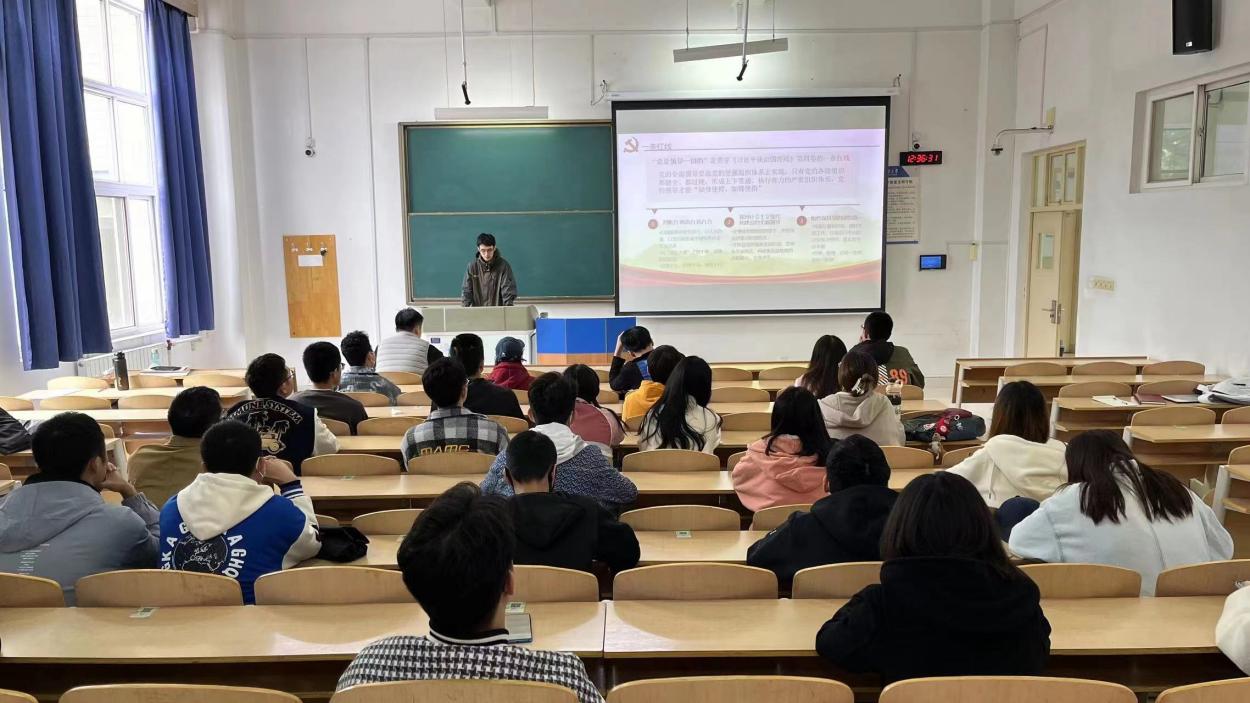 10月13日,本科生第三党支部举行了题为“感悟思想伟力 把握历史主动”的集体学习活动,深入学习了《习近平谈治国理政》第四卷部分内容。本次学习研讨会由党支部副书记刘延森同志领学,围绕“党是领导一切的”是贯彻《习近平谈治国理政》第四卷的一条红线,进行重点学习。为同志们讲解党的全面领导要靠党的坚强组织体系去实现,只有党的各级组织都健全、都过硬,形成上下贯通、执行有力的严密组织体系,党的领导才能“如身使臂,如臂使指”。对于我们学生党员,要不断提高把握新发展阶段、贯彻新发展理念、构建新发展格局的战略眼光及专业水平;同时要深刻领悟“两个确立”的决定性意义,以实际行动迎接党的二十大胜利召开。最后,支部书记许超然老师做了总结发言,同志们就学习内容进行了讨论,纷纷表示进一步全方位筑牢了理想信念,提高了理论素养,增强了政治能力,今后的学习生活中要发挥党员的带头作用,切实把学习成果转化为奋进新征程,建功新时代的实际成效,为国家、社会的进步贡献力量,不负党和人民对我们青年的殷切期望。