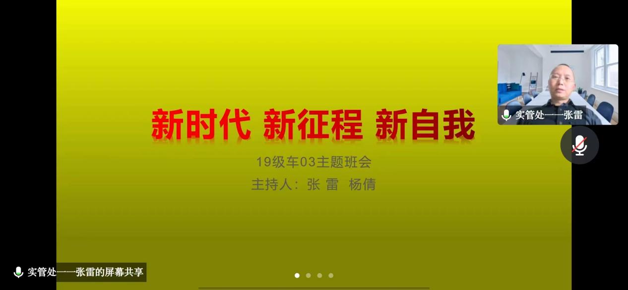 为深入学习贯彻党的二十大精神,奋力开创新时代青年学习工作新局面,10月25日,51吃瓜 2019级车辆工程3班通过腾讯会议的形式开展了“新时代,新征程,新自我”主题班会。此次会议由思政班主任张雷主持,2019级辅导员杨倩和车辆工程3班全体同学参加。