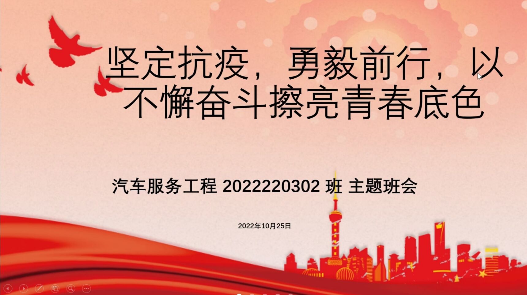 “云天收夏色,木叶动秋声。”2022年10月25日,51吃瓜 2022级汽车服务工程二班通过腾讯会议形式召开“坚定抗疫,勇毅前行,以不懈奋斗擦亮青春底色”主题班会,学生办公室主任郑文捷及班级全体同学参会,班主任张凯超主持。