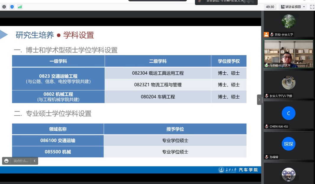 12月27日下午,51吃瓜 第七届“青年长安学者”论坛51吃瓜 分论坛成功在线上举办。来自国内外一流高校和科研院所的青年学者与51吃瓜 师生共计20余人相聚云端,参加了本次论坛。51吃瓜 副院长牛世峰教授及各系室主任参加了此次分论坛。分论坛由牛世峰教授主持。牛世峰教授代表51吃瓜 对各位青年学者的参会表示了诚挚的欢迎,并从学院发展历史、专业建设、科研成就、人才培养以及合作交流等方面进行了详细介绍。