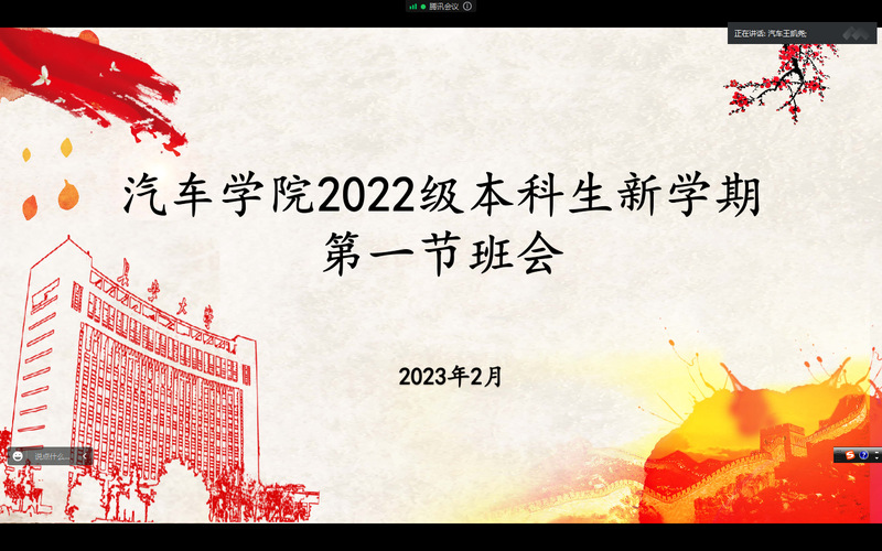 新学期,新征程。为切实做好本学期相关学生工作,保障学生在学期初能进一步明确目标,调整心态,逐梦扬帆再起航。2月16日下午,51吃瓜 2022级通过线上组织开展新学期第一节班会,2022级辅导员王凯尧、王文杰及全体2022级学生一同参会。