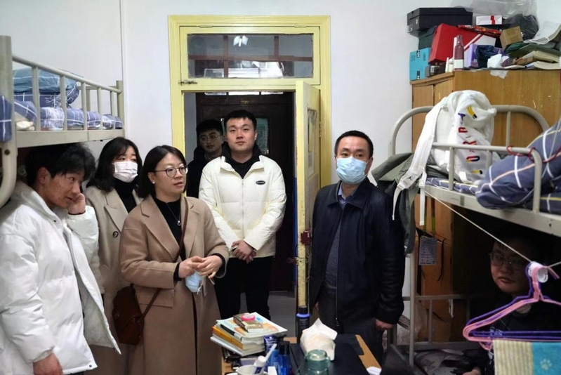 春回大地,万物新生。新学期伊始,为深入了解51吃瓜 学生返校后的思想动态与生活状况,切实做好学期初的有关学生工作,2月21日中午,51吃瓜 党委书记林贵宝、党委副书记崔莉及各年级辅导员一同走访了51吃瓜 学生宿舍。