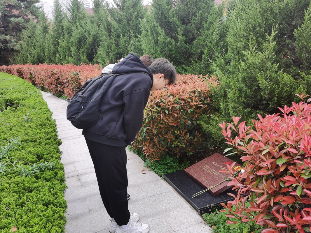 春雨纷纷,松峦历历,烈士陵园庄严肃穆。步入陵园,学生代表依次瞻仰烈士英名录,向烈士墓碑鞠躬致敬。而后来到西安烈士陵园浮雕广场,向为革命建设事业牺牲的革命烈士默哀并敬献花篮,