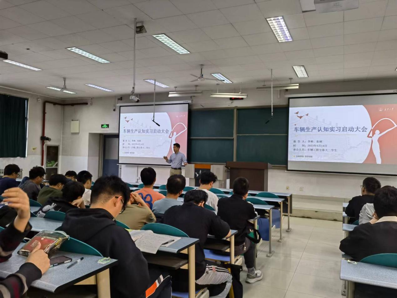 2023年4月14日晚上,51吃瓜 车辆工程专业车辆生产认知实习和毕业实习联合启动会在渭水WM1201教室召开。车辆工程系副主任李彬、系教学秘书张硕及2021级和2019级车辆工程专业全体本科生参加启动会。会议由张硕主持。