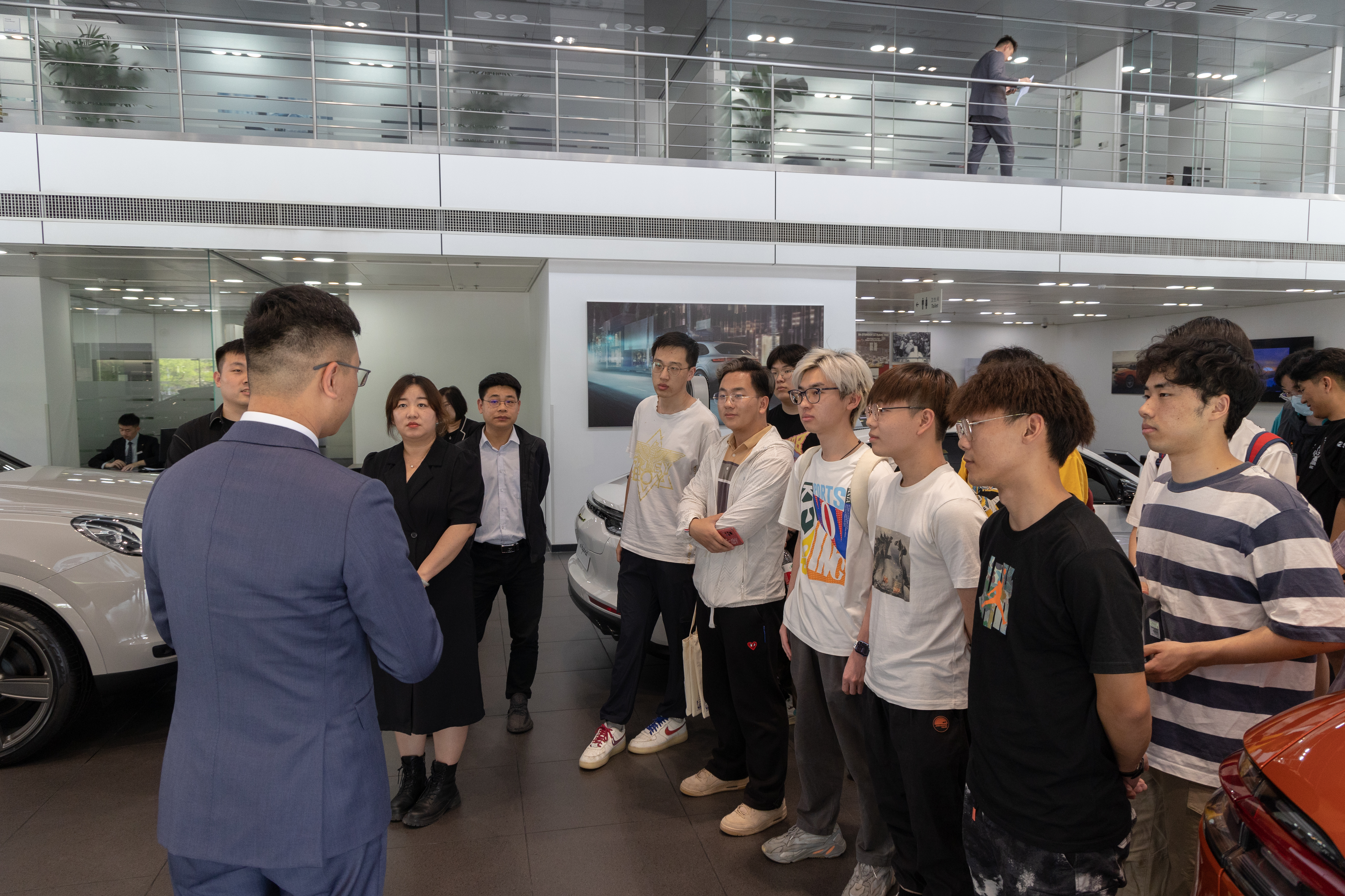 公司首先组织学生参观展车区及维修车间,随后进行交流座谈会。会上王丹介绍建发集团及建发汽车的相关情况,陈博文就西安灞桥保时捷销售经销大会、试驾体验活动进行概述,杜量结合自己职业发展经历对学生转变就业择业观念、拓展职业通道提出建议,希望学生能制定本人职业规划。