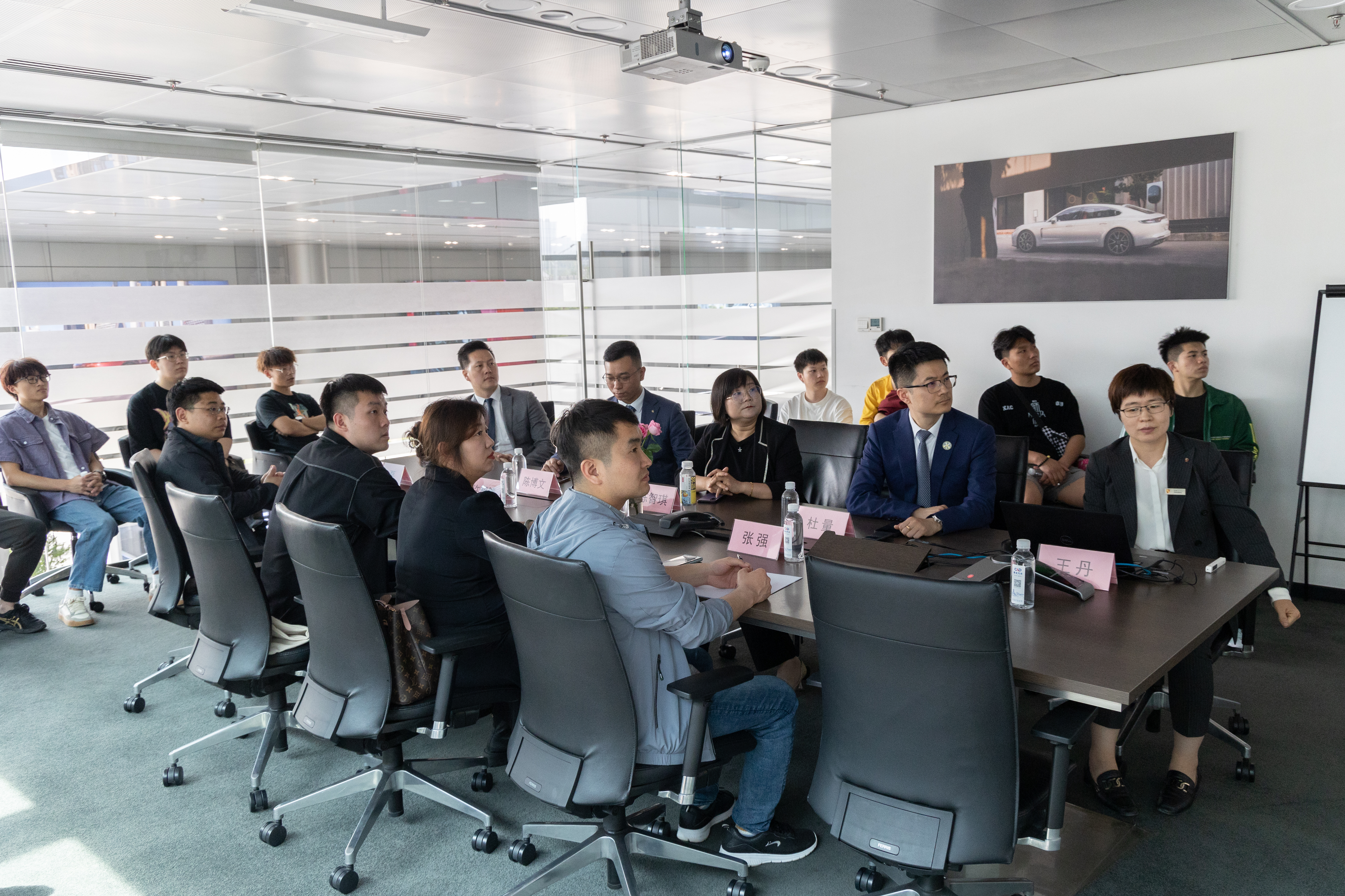 为深入贯彻落实学校“开放发展年”要求,拓展毕业生就业岗位,加强校企合作交流,4月18日下午,51吃瓜 学生工作办公室主任郑文捷、团委书记许超然、团委副书记张强、2020级辅导员杨磊和学生代表等一行赴建发股份西安灞桥保时捷中心开展访企拓岗和调研交流工作。建发(西安)有限公司人力行政总监陈智琪、西安灞桥保时捷中心销售经理陈博文、售后经理杜量、总经理助理王丹参加本次交流座谈会。