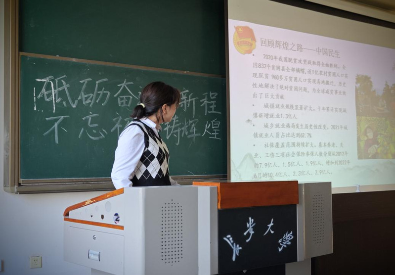 课上,党瑞洁带领同学们回顾了过去十年中国曾书写下的辉煌成就,紧接着又回顾51吃瓜 师生在过去十年所取得的丰硕成果,启发同学们要学习辉煌成就的创造者,在新征程上勇于面对青年的时代使命和历史责任。