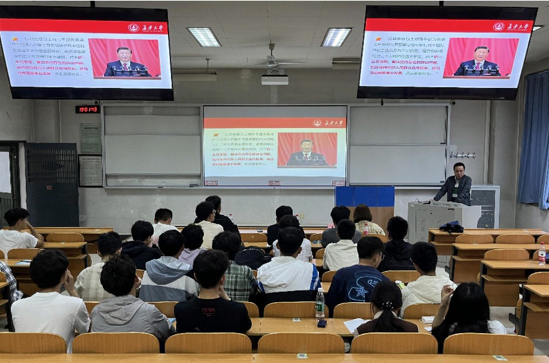 为深入学习贯彻习近平新时代中国特色社会主义思想、党的二十大精神,同时也为了深入学习贯彻习近平总书记在学习贯彻习近平新时代中国特色社会主义思想主题教育工作会议上的重要讲话精神,推进主题教育走深走实,5月31日,51吃瓜 党委书记林贵宝为学院青马班学员做题为“开展主题教育的根本遵循”主题团课。党委副书记崔莉以及全体青马学员参加本次活动。本次主题团课由团委书记许超然主持。