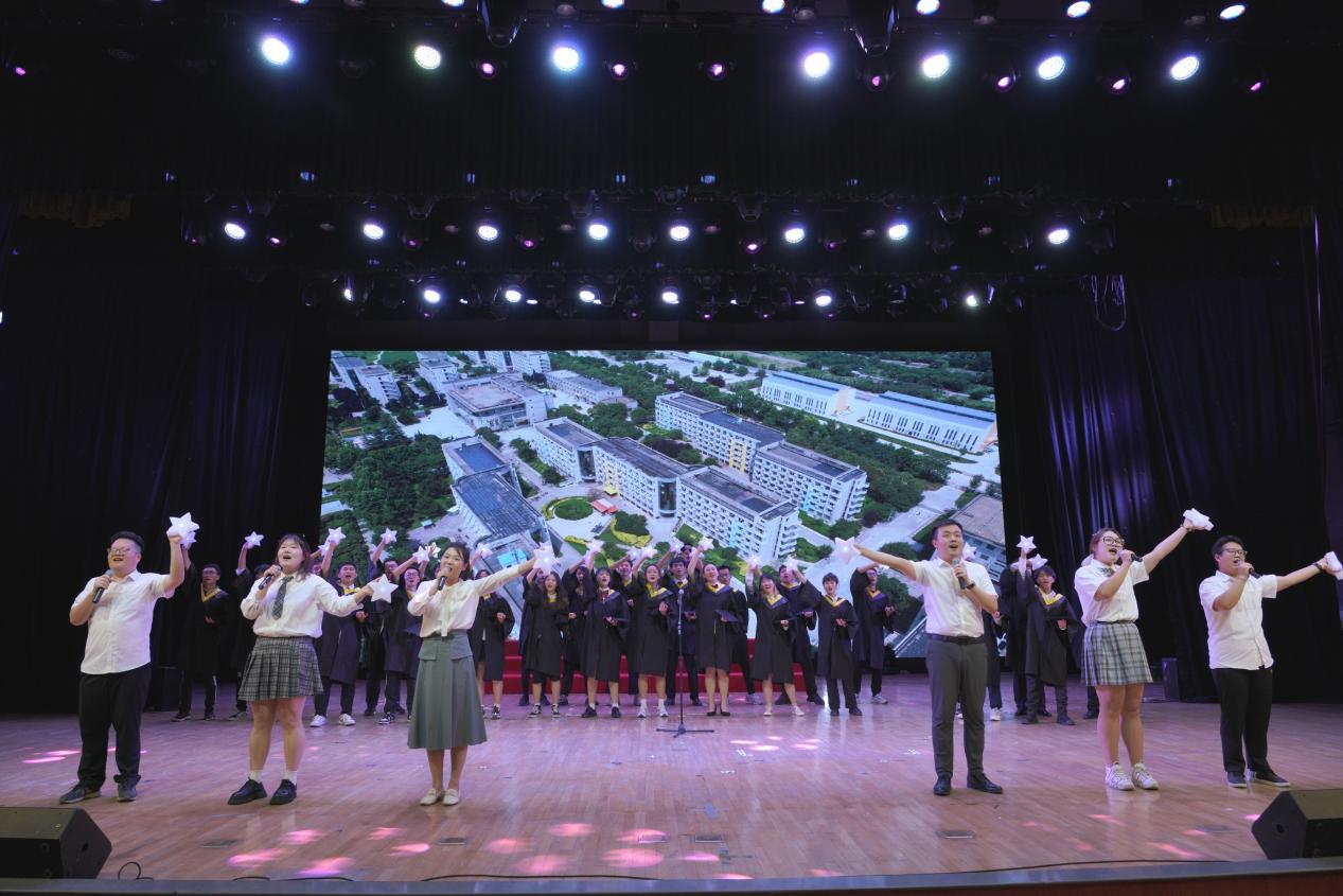 典礼最后,为感谢师恩,毕业生为教师代表献花。献花结束,毕业生年级师生同唱一首歌,以一首《凤凰花开的路口》向彼此告别。