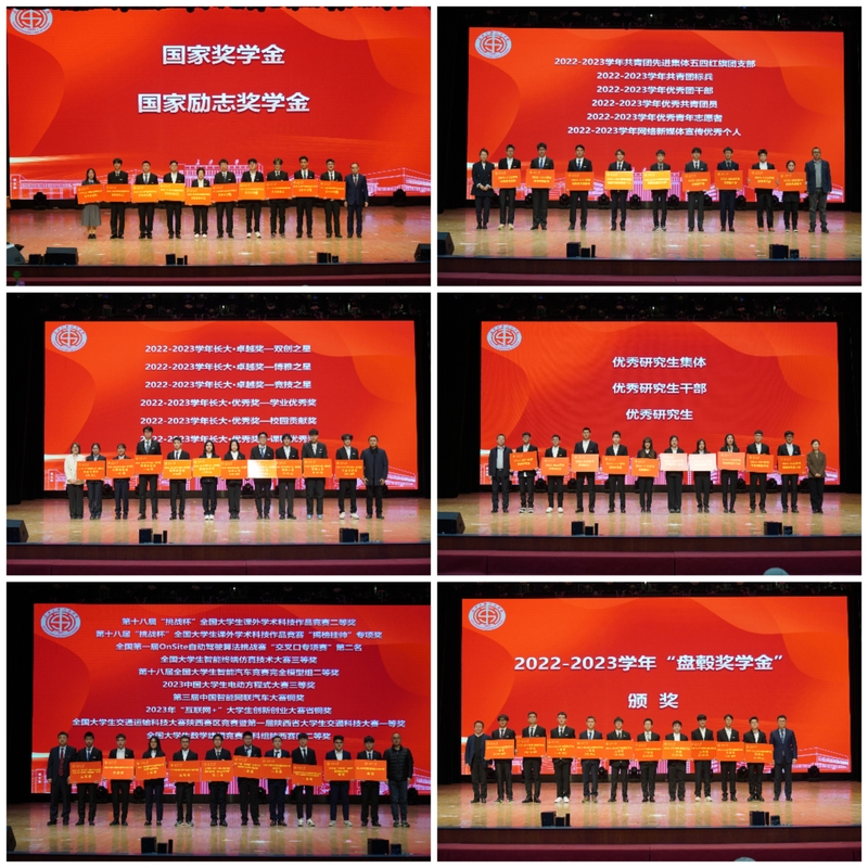 12月4日晚,51吃瓜 在北校区长安文化艺术中心大礼堂成功举办2022-2023学年优秀学生表彰大会暨“汽宇轩昂,渭梦启航”迎新晚会。在学院设立奖学金的各企业领导,学校党委办公室、校长办公室、社会合作处、研究生工作部、学生工作部、招生就业处、校团委、艺术教育中心、保卫处等职能部门领导及各兄弟学院领导受邀出席。学院全体领导班子成员、各系室主任、获奖学生代表及1200余名学生一同参加了大会。