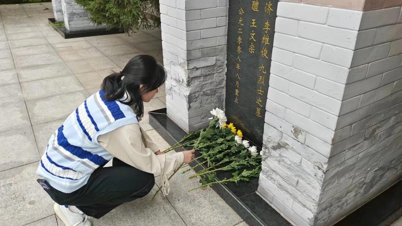 在烈士纪念碑前,同学们整齐列队,默哀一分钟,深切表达对革命先烈的追思。在烈士墓碑前,同学们依次向英烈们敬献鲜花,不仅是表达对他们的无限敬仰和深深怀念之情,更是对他们精神力量的努力汲取。