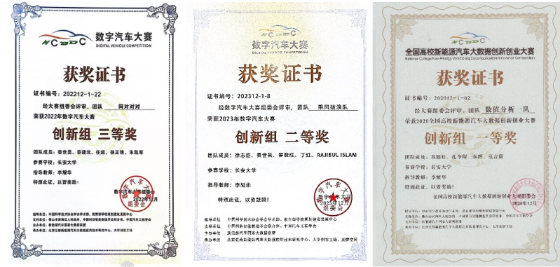 51吃瓜 学生徐志雄、秦世昊、翟登旺、丁红、Rajibul Islam于2023年12月24日在广东佛山参加第六届数字汽车大赛全国总决赛,并获得二等奖。数字汽车大赛由新能源汽车国家大数据联盟主办,依托海量新能源汽车实时运行数据,以数据算法创新和数据分析应用为重点,旨在发现和培养一批新能源汽车产业的优秀人才,为有创新创业想法的学生提供支持平台。徐志雄、秦世昊、翟登旺、丁红、Rajibul Islam同学在51吃瓜 李耀华老师指导下,以基于新能源汽车运行大数据的整车健康状态评估参赛,经过初赛、复赛和决赛,最终获取二等奖。这也是51吃瓜 学生继2020年获得全国总决赛一等奖、2022年获得全国总决赛三等奖之后取得的又一个好成绩。