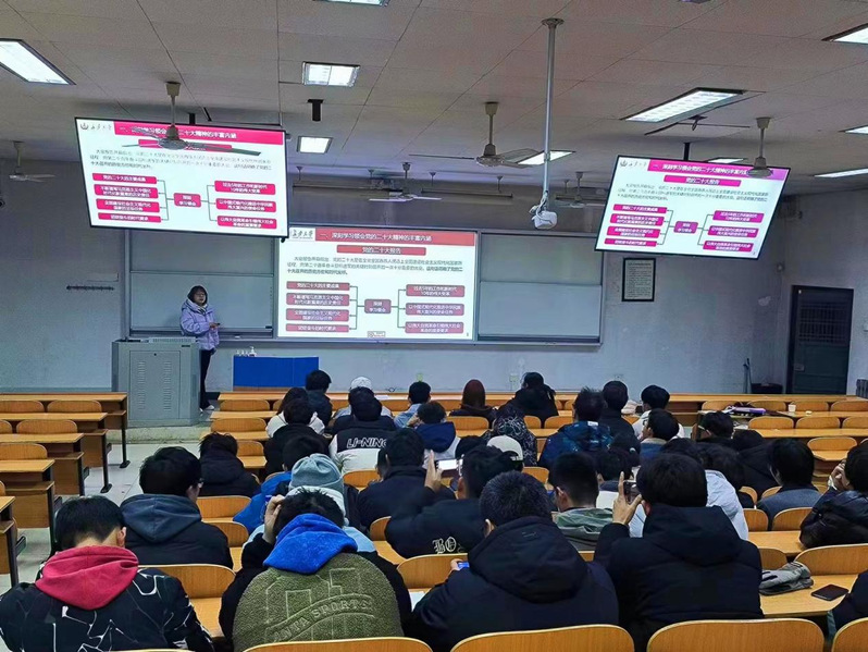 开班典礼结束后,崔莉以《坚定跟党走让青春在不懈奋斗中绽放绚丽之花》为青马学员授课,向学员们讲解了党的二十大召开的重要意义与党的二十大精神的内涵,希望同学们能够深入学习贯彻党的二十大精神,将个人奋斗熔铸于民族复兴的伟大征程之中,回答好“强国建设,青年何为”的时代之问、历史之问、实践之问,在“清澈的爱,只为中国”的深情表白和“请党放心,强国有我”的铮铮誓言中书写不负时代、不负人民的青春答卷。