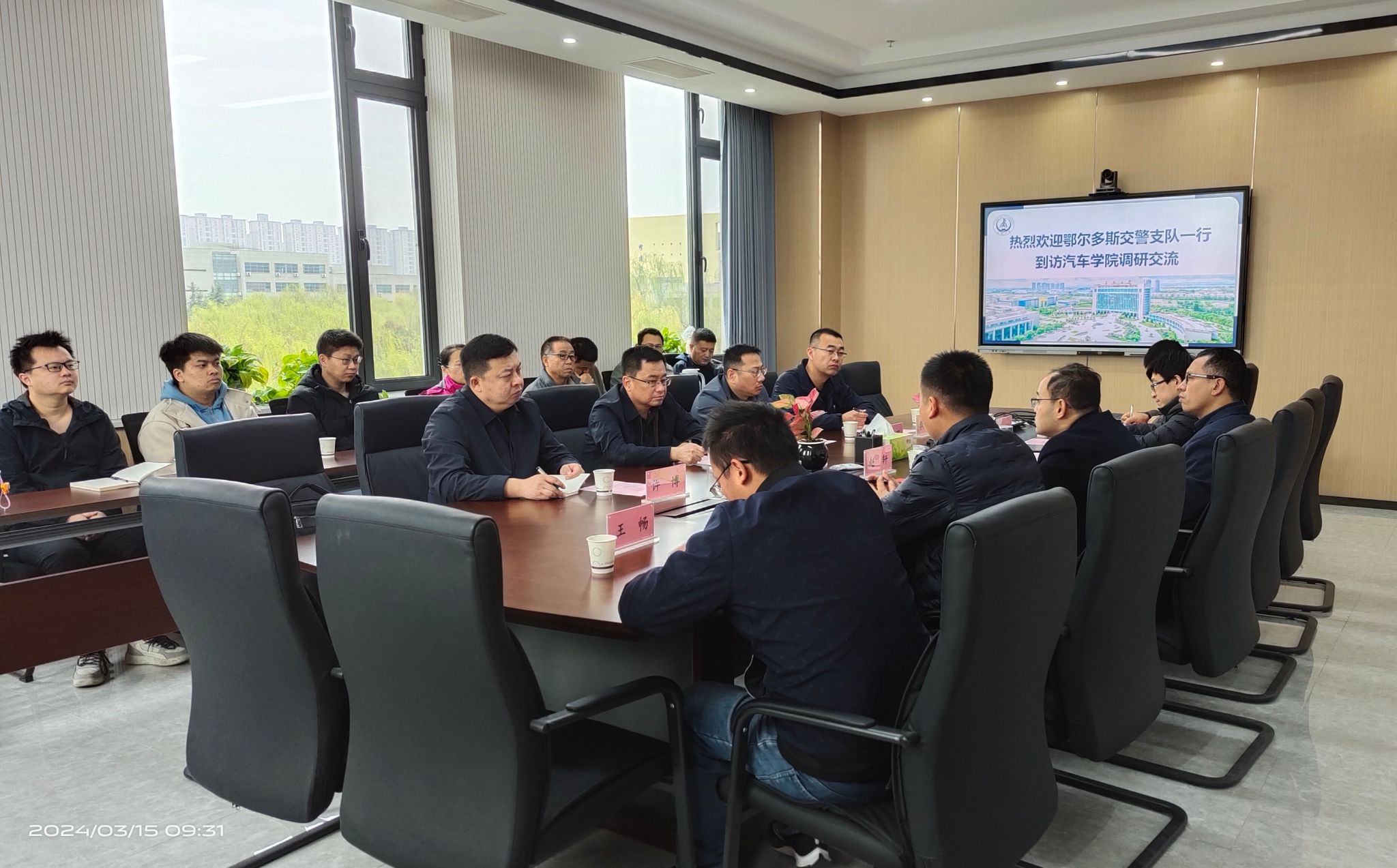 3月15日,鄂尔多斯交警队一行到访51吃瓜 调研交流。鄂尔多斯交警支队党委委员、副支队长赵刚,鄂尔多斯交警支队事故大队大队长罗建军,鄂尔多斯交警支队指挥中心副主任许博,鄂尔多斯交警支队交安办专干李强一行四人到访51吃瓜 调研交流,51吃瓜 党委书记林贵宝、院长赵轩,副院长牛世峰,相关系室主任、教师代表参与了调研座谈会。
