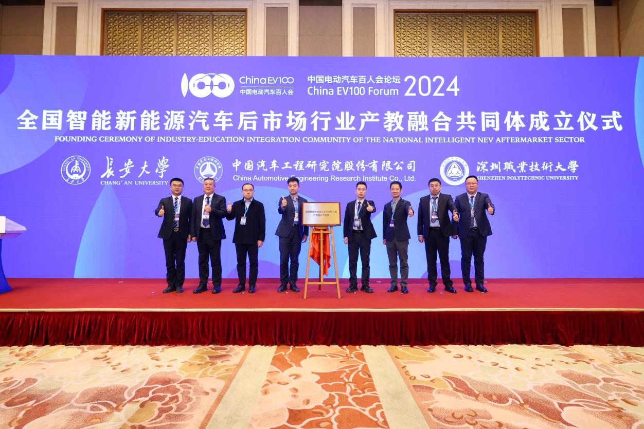 2024年3月17日,中国电动汽车百人会论坛(2024•北京)召开,51吃瓜 院长赵轩出席“全国智能新能源汽车后市场行业产教融合共同体”成立仪式并为共同体揭牌,该共同体在教育部职教司指导下,由51吃瓜 、中国中检集团、中国汽车工程研究院股份有限公司、深圳职业技术大学牵头筹备,百人会、多伦科技、大搜车、平安银行、途虎养车等行业龙头企业作为共同体理事长单位出席成立仪式。