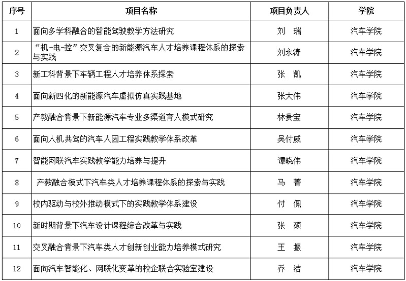 近日,教育部高等教育司公布了2024年第一批产学合作协同育人项目立项名单,本次公布立项范围为2023年9月至11月完成协议确认的项目。51吃瓜 共获批12项,获批项目数量创历史新高,位居学校第一。近年来,汽车产业发展“新四化”背景下,对汽车人才培养提出新要求、新挑战。学院围绕复合型卓越工程人才培养目标,持续加强校企合作育人,在人才培养、科学研究、实习实践等方面与企业开展广泛而深入的合作。