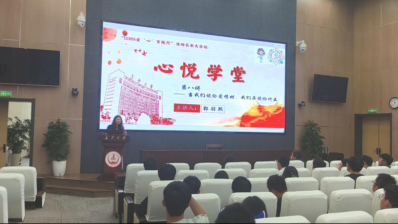 5月20日晚,共青团“12355爱‘心’百校行”活动51吃瓜 站之51吃瓜 “心悦学堂”心理健康教育系列讲座第八讲于北校区师生服务大厅二层第二报告厅举行。学校心理健康教育与咨询中心专任教师郭羽熙作“当我们谈论爱情时,我们在谈论什么”主题讲座,未来交通学院团委书记曾晓阳出席,51吃瓜 150余名学生参与,讲座由51吃瓜 团委副书记杨倩主持。