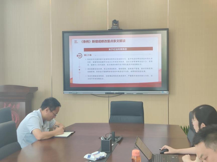 6月27日下午,为深入学习贯彻习近平总书记关于全面加强党的纪律建设的重要论述,更加全面理解把握新修订的《中国共产党纪律处分条例》,智能车辆工程系党支部在学院321会议室开展专题学习活动。