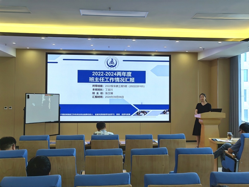 9月6日下午,51吃瓜 于学院310会议室举行2023-2024学年本科生班主任考核暨优秀班主任答辩会。院党委书记林贵宝,院长赵轩,院党委副书记、副院长周姗姗,副院长牛世峰、陈轶嵩,以及各系室主任、教师代表和学生代表一同参会。会议由学生工作办公室主任郑文捷主持。