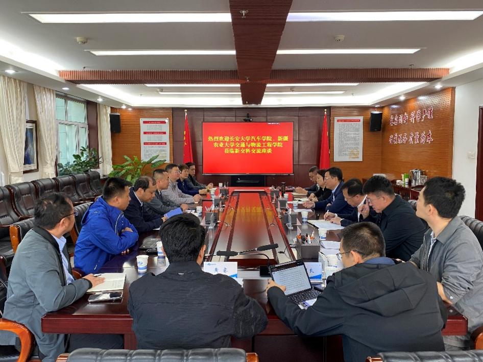 新疆交通科学研究院有限责任公司党委副书记、总经理徐亚峰,副总经理刘健、副总经理热孜万古丽﹒沙塔尔等对51吃瓜 领导老师的到来表示热烈的欢迎,徐亚峰在座谈中详细介绍了新疆交科院的人员规模、企业现状、行业定位、工程优势等情况,希望能在道路交通安全技术、道路基础设施安全技术、特殊场景车路协同技术、大件货物运输技术等方向,进一步推动校企合作落地。林贵宝对公司长期以来对51吃瓜 的大力支持表示衷心的感谢,从学院历史沿革、学科专业设置、人才培养、学科建设和科研方向等方面介绍了学院当前的发展情况,希望在产学研合作、青年教师培养等方面进一步与企业加强合作,实现互惠共赢、共同发展。