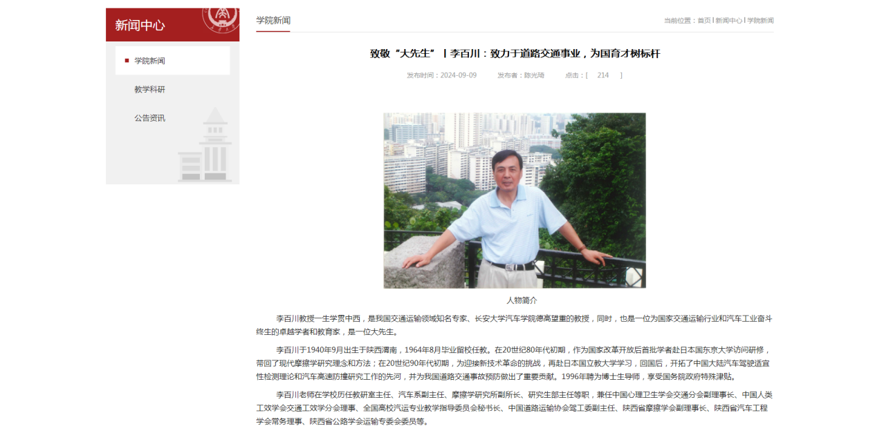 三是选树先进典型,增强见贤思齐的思想自觉。积极选树先进典型,广泛宣传先进教师事迹,51吃瓜 微信公众号《亦师亦友 言传身教|2024年51吃瓜 优秀研究生指导教师!》一文介绍51吃瓜 付锐教授的事迹;微信公众号51吃瓜 学生在线以《温暖学生春秋冬夏,情系学生成长成才——陕西高校“表现突出辅导员”郑文捷》为题,专题介绍51吃瓜 辅导员郑文捷先进事迹;51吃瓜 在学院官网、微信公众号平台推出《致敬“大先生”丨李百川:致力于道路交通事业,为国育才树标杆》新闻报道,宣传李百川教授先进事迹。相关宣传报道累计阅读量达3.2万次,激励广大教师见贤思齐,积极投身教育强国建设实践。