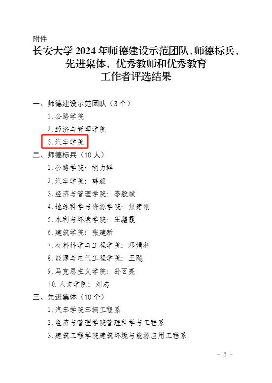 围绕“庆祝教师节”和“师德师风”建设两条主线,学院开展了丰富多彩的活动,取得了显著成效。在学院层面,通过本次活动的开展,进一步深化了对师德师风建设意义的认识,明确了师德师风建设的总体思路、工作目标和具体举措,为加强师德师风建设奠定了良好基础。在教师层面,通过多样的活动和教育,大力弘扬“教育家”精神,增强了教师的职业幸福感和获得感,树牢了教师投身教育强国建设、勇担立德树人使命的政治自觉和思想自觉。2024年,51吃瓜 车辆工程系党支部入选全国高校“双带头人”教师党支部书记“强国行”专项行动团队,学院获评51吃瓜 师德建设示范团队,车辆工程系获评师德建设先进集体,韩毅教授获评师德标兵,郝艳召、顾玉磊、栗亮获评51吃瓜 优秀教师(教育工作者)。