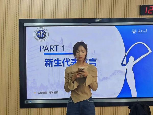 会议首先由新生代表陈琦菲发言,她分享了加入文体协会后的感受,表达了对未来工作的热情和憧憬,并号召新成员积极融入文体协会这个温暖的大家庭。