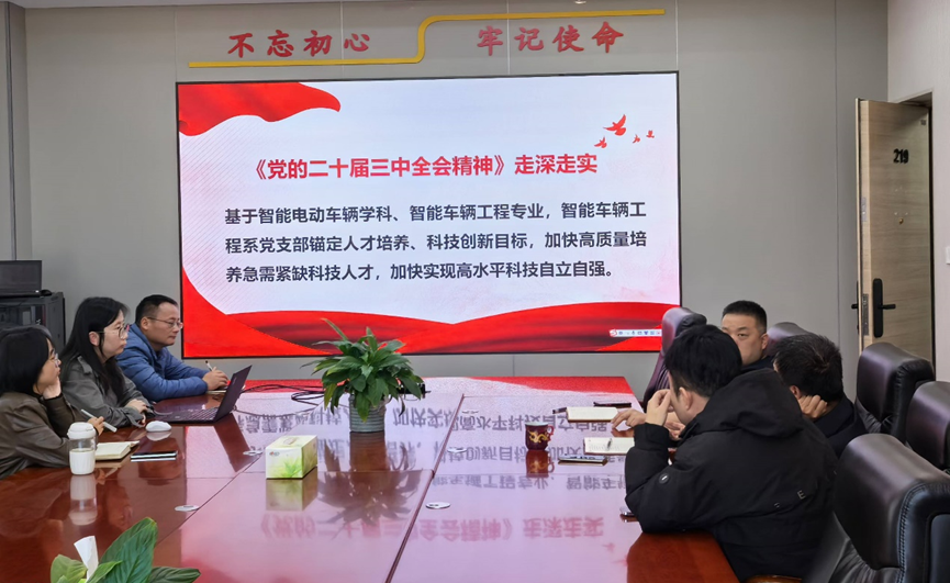 11月6日,智能车辆工程系党支部在学院219党建会议室开展学习贯彻党的二十届三中全会精神专题学习活动,并由党支部书记张硕讲授专题党课,旨在推动全会精神在智能车辆工程系走深走实、落地生根。