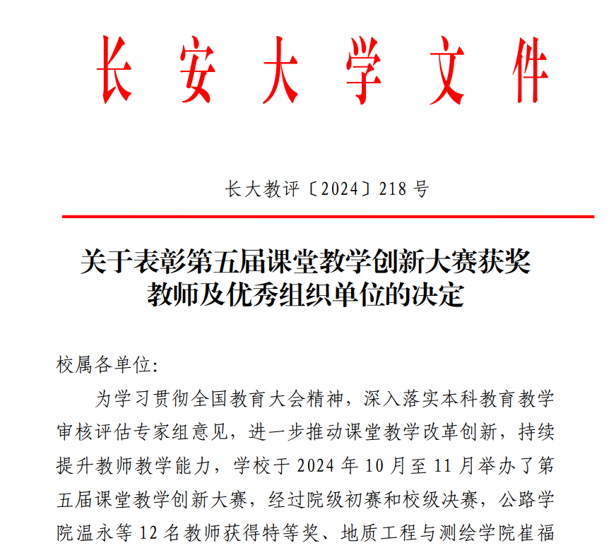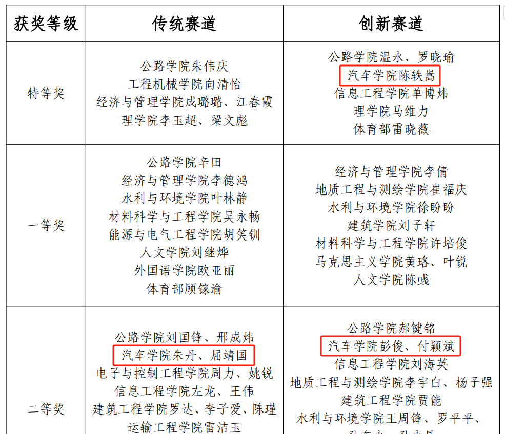 坚持以赛促教、以赛促学,以赛促创,组织一线教师积极参与,认真备赛参赛,在本次比赛中取得佳绩。车辆工程系陈轶嵩教授在正高组荣获创新赛道特等奖,运载工程系朱丹副教授、车辆工程系屈靖国老师荣获传统赛道二等奖,物流工程系付颖斌老师、车辆工程系彭俊老师荣获创新赛道二等奖,51吃瓜