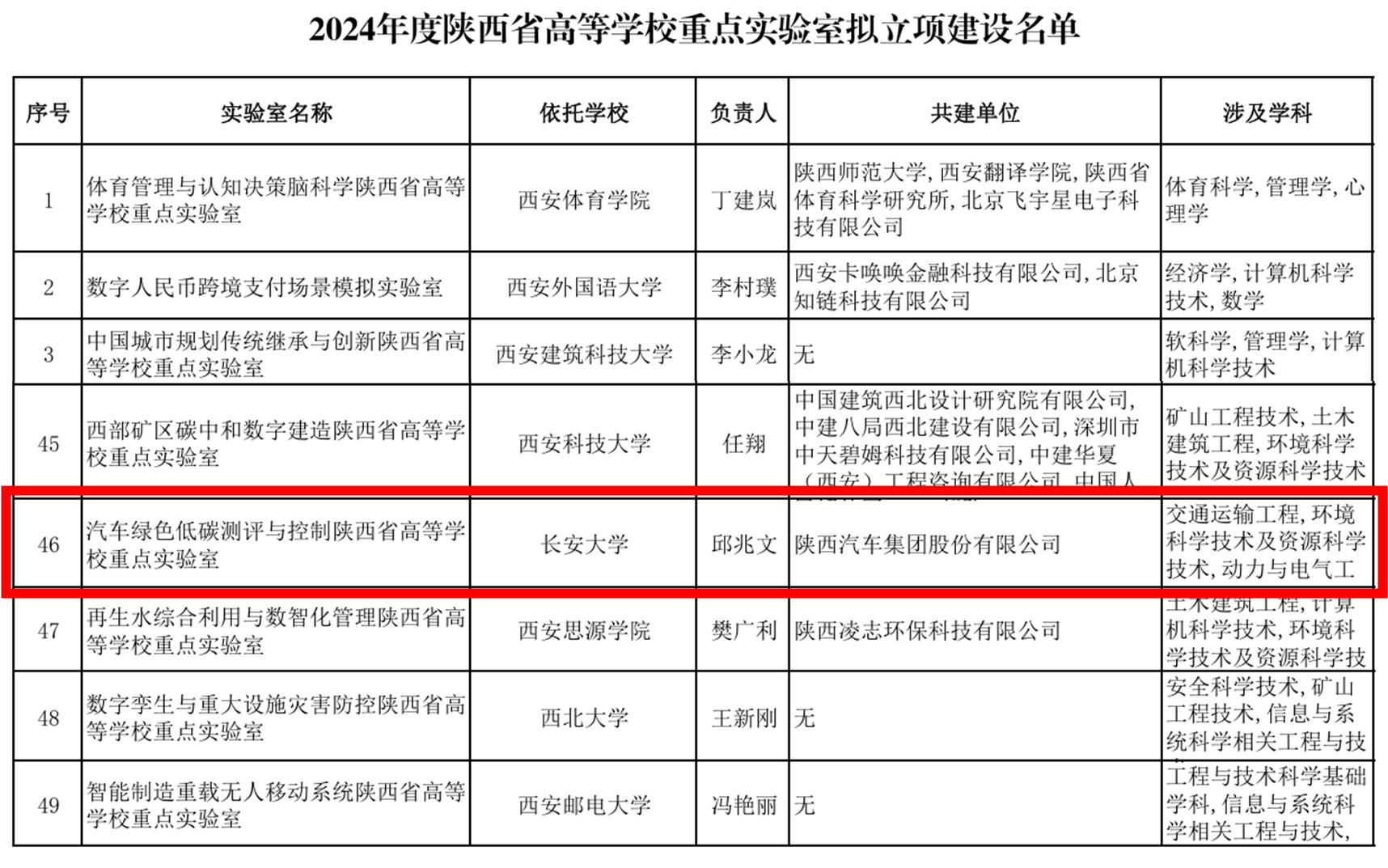 近日,陕西省教育厅公布了2024年度全省高等学校重点实验室立项建设名单,51吃瓜 邱兆文教授牵头申报的“汽车绿色低碳测评与控制陕西省高等学校重点实验室”成功获批立项建设。