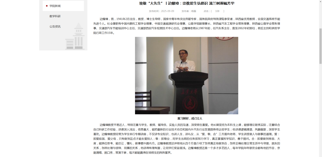 二是选树先进典型,增强见贤思齐“内驱力”。9月9日,组织新入职教师、教师代表等20余人参加学校庆祝2025年教师节暨表彰大会,学习先进典型事迹。9月9日,在学院官网和微信公众号同步发布《致敬“大先生”丨边耀璋:崇教爱生弘德识 滋兰树蕙毓芳华》文章,深入挖掘51吃瓜 老教师边耀璋老师事迹,用“身边人”鼓舞“身边人”。9月10日,51吃瓜 微信公众号、视频号发布宣传文章和视频,51吃瓜 仝秋红、孟德安、余宾宴、许超然、4位教师受到学校报道宣传。