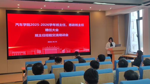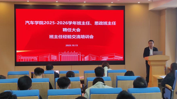 为进一步加强学院班主任队伍建设,促进班主任工作的制度化、规范化和科学化,10月15日,51吃瓜 召开2025-2026学年班主任、思政班主任聘任大会暨班主任经验交流培训会。学院党委书记林贵宝,院长赵轩,党委副书记崔莉,学生工作办公室主任郑文捷,全体新任班主任、思政班主任及辅导员共同参会。会议由郑文捷主持。