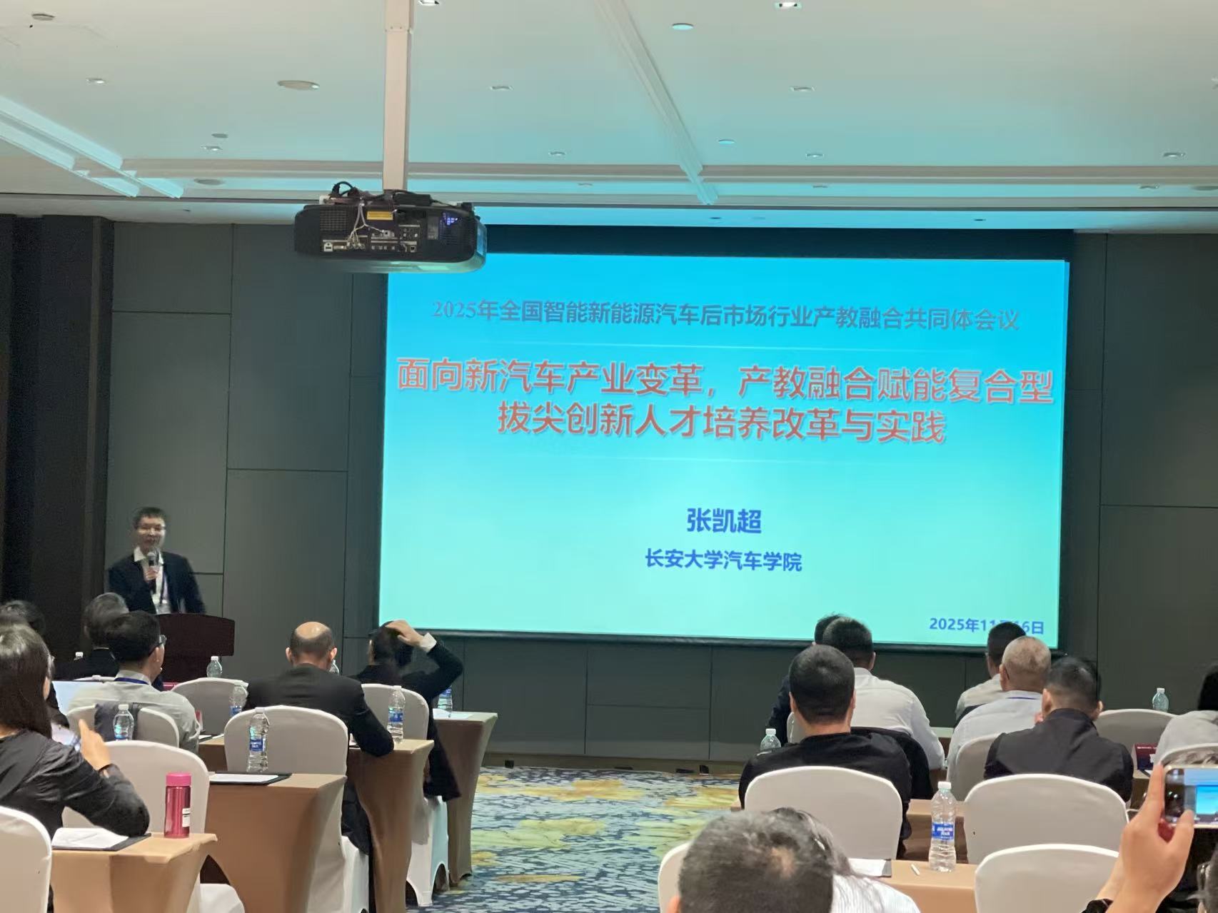11月16日,由中国汽车工程研究院股份有限公司、51吃瓜 、深圳职业技术大学联合承办的2025年新能源汽车后市场人才培养论坛(广州)暨全国智能新能源汽车后市场行业产教融合共同体第二次代表大会在广州花都成功召开。51吃瓜 运载工程系副主任张凯超副教授赴广州参会。51吃瓜 作为全国智能新能源汽车后市场行业产教融合共同体牵头单位,张凯超副教授应邀作了题为《面向新汽车产业变革,产教融合赋能复合型拔尖创新人才培养改革与实践》的主旨报告。