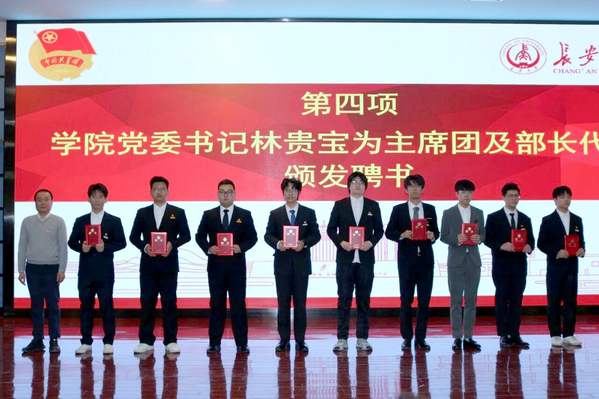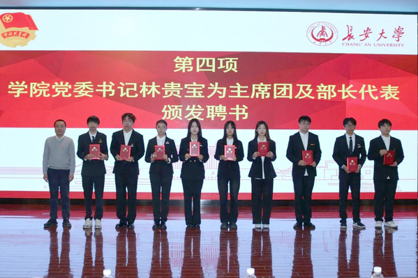 随后,林贵宝为新一届学生组织主席团及部门负责人代表颁发聘书。